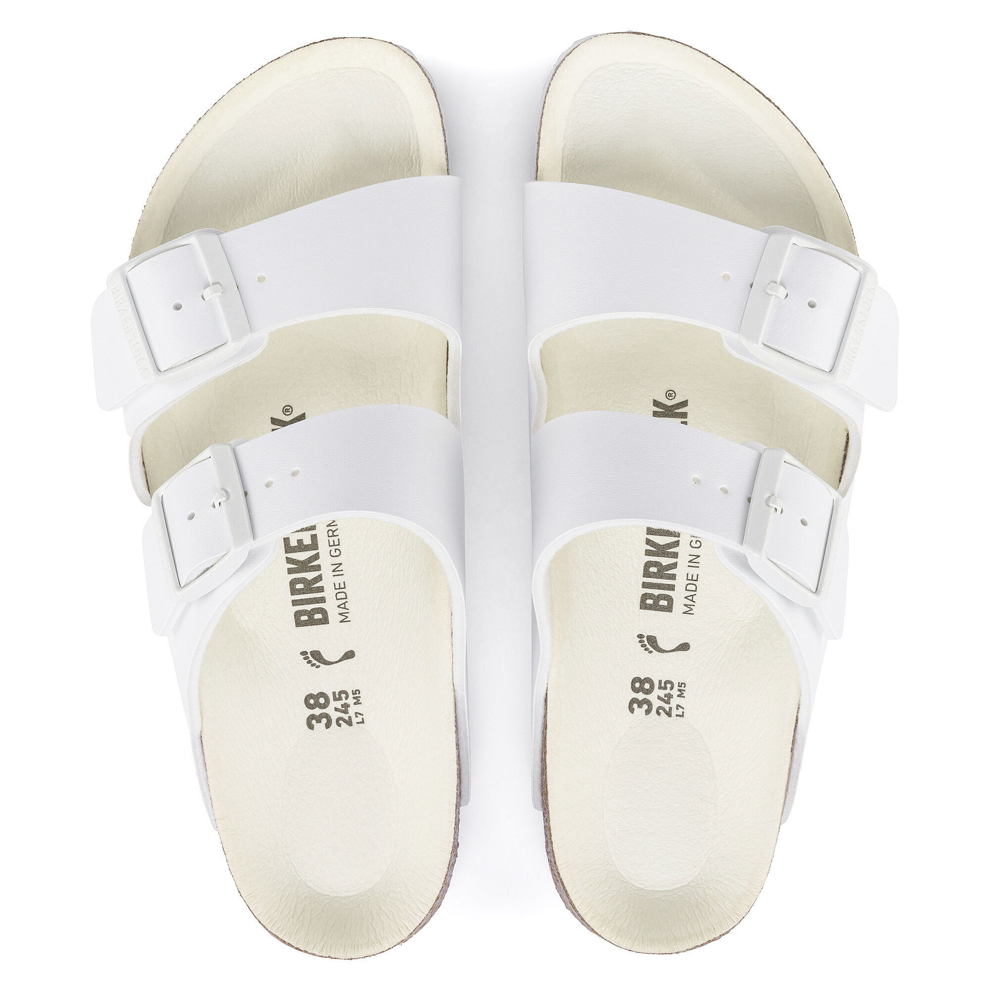 The legendary two-strap design from BIRKENSTOCK - the Arizona. Iconic style complemented with the signature comfort of the BIRKENSTOCK footbed. The color-coordinated microfiber footbed liner rounds off the shoe��s look of sophistication. The upper is made from the skin-friendly, hard-wearing synthetic material Birko-Flor®.