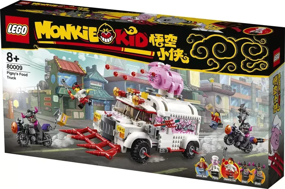 - LEthtGO�?Monkie Kid�?fans will love Pigsy鈥檚 Food Truck, a brilliantly detailed, wacky vehicle with many hidden weapons, such as Pigsy鈥檚 rake, to battle against 2 food-stealing Bull Clones riding brick-built toy motorcycles.