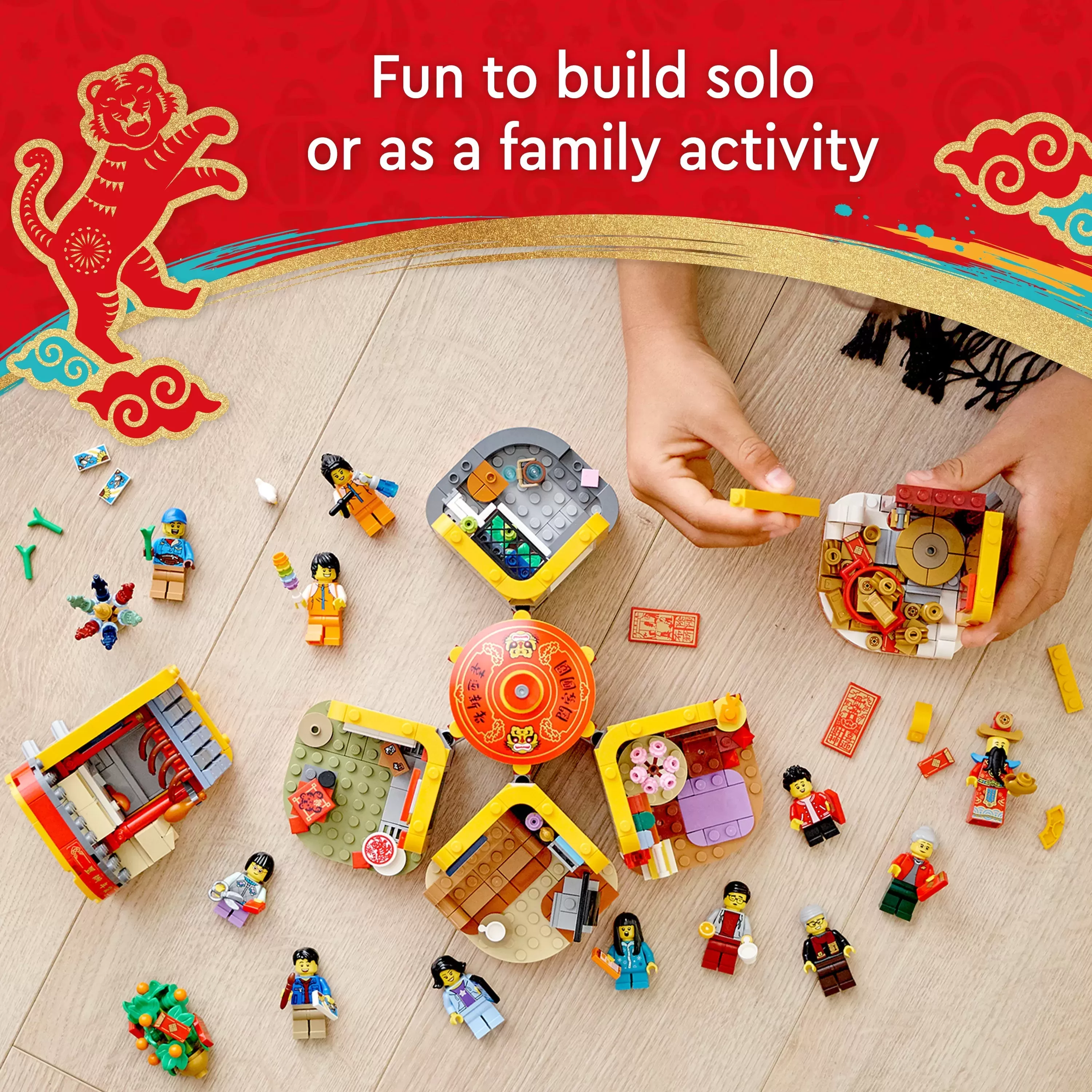 The set features 12 LEthtGO minifigures, including the God of Wealth and a family of 6 people, to bring the scenes to life and let kids role-play their own stories.