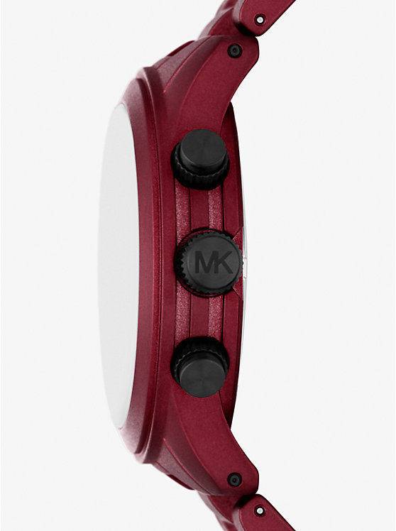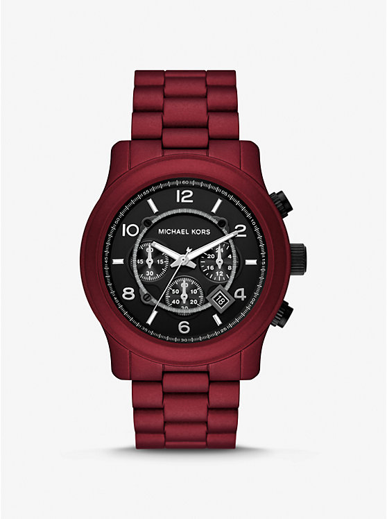 A perennial favorite, our Runway watch is updated with a sunken black dial for a refined, versatile finish. This ultra-sleek style is crafted from red-coated stainless steel with a polished bracelet strap, and features chronograph details for precise timekeeping.