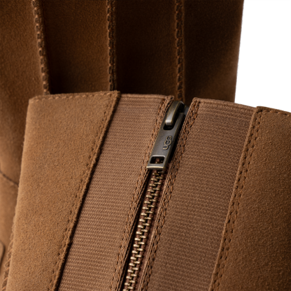 - The utthhgg® logo, embossed suede heel label